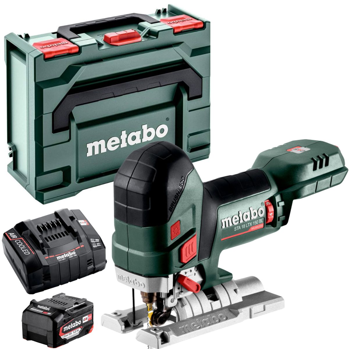 Metabo STA 18 LTX 150 BL 18V Brushless Body Grip Jigsaw with 1 x 5.2Ah Battery Charger & Metabox