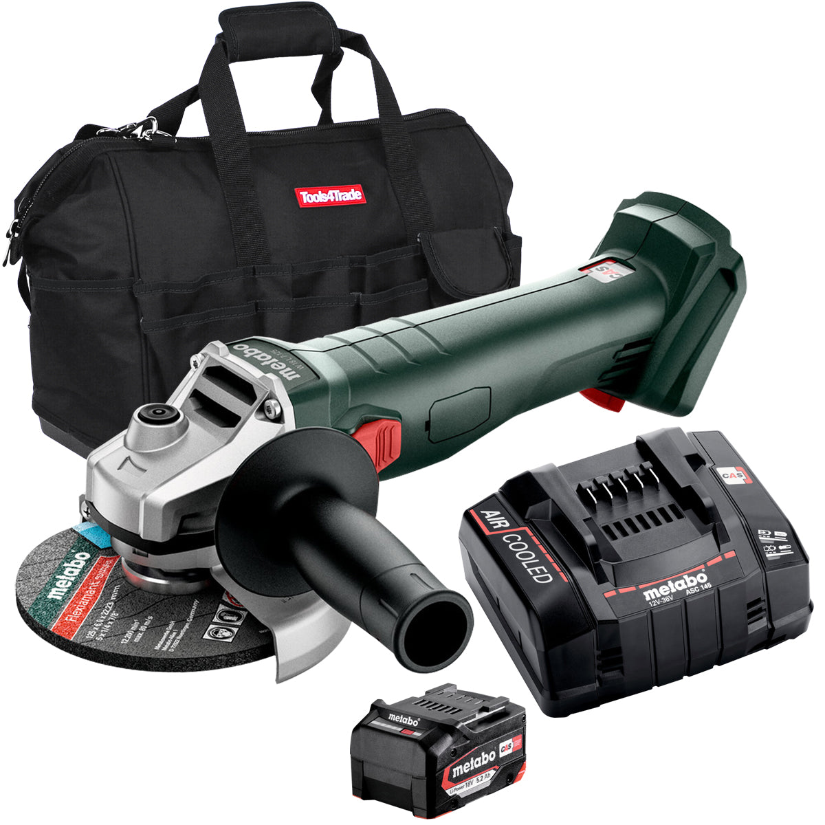 Metabo W 18 7-125 18V 125mm Angle Grinder with 1 x 5.2Ah Battery Charger & Bag